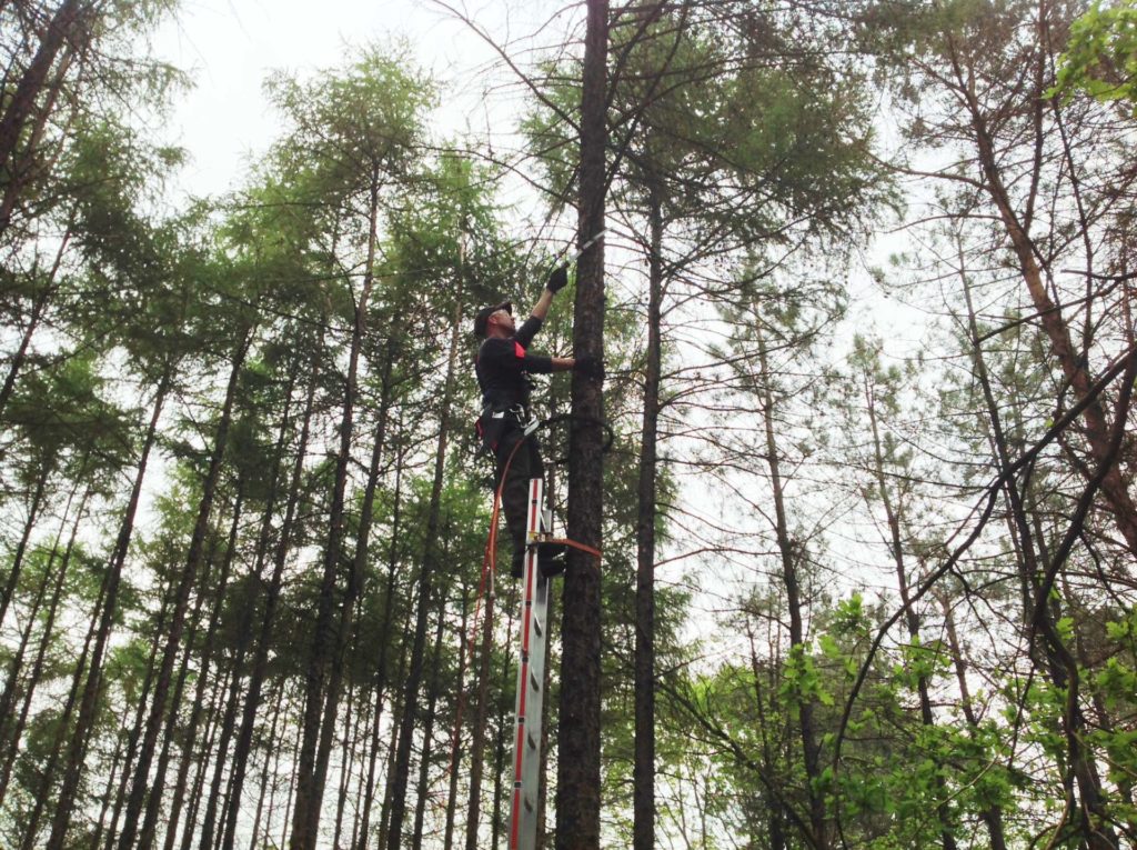 De op te snoeien kwaliteitsbomen waren al door Staatbosbeheer geselecteerd en gemarkeerd. Hierdoor waren ze voor de snoeimedewerkers makkelijk te vinden in het bos. De kwaliteitsbomen worden opgesnoeid met behulp van een ladder. We snoeien met een gebogen handzaag waardoor we zeer nauwkeurig kunnen werken. De bomen worden in principe tot 8 meter opgesnoeid, maar de kenmerken van de individuele boom bepalen de daadwerkelijke eindhoogte. Zo kan een splitsing op 7 meter bepalen dat er niet verder dan 7 meter is gesnoeid en een boom met dode takken boven de 8 meter kan hoger worden opgesnoeid. De maximale hoogte die is gesnoeid ligt rond de 9 meter. De locatie van de boom is met de telefoon op GIS-kaart vastgelegd. We meten de diameter op borsthoogte en leggen de soort vast. Tevens is de opgesnoeide hoogte vastgelegd en de datum van de snoei.